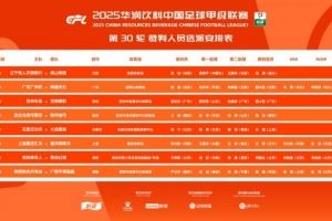 中甲第30轮裁判具体安排如下(详情见图):